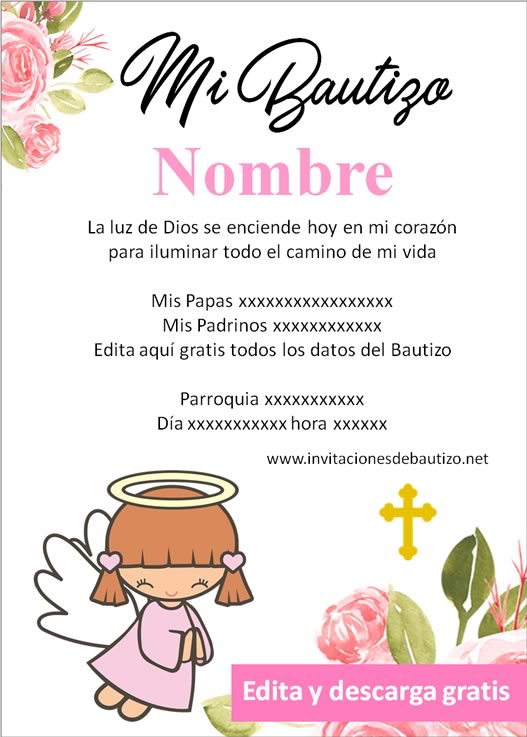Invitaciones de Bautizo para editar gratis